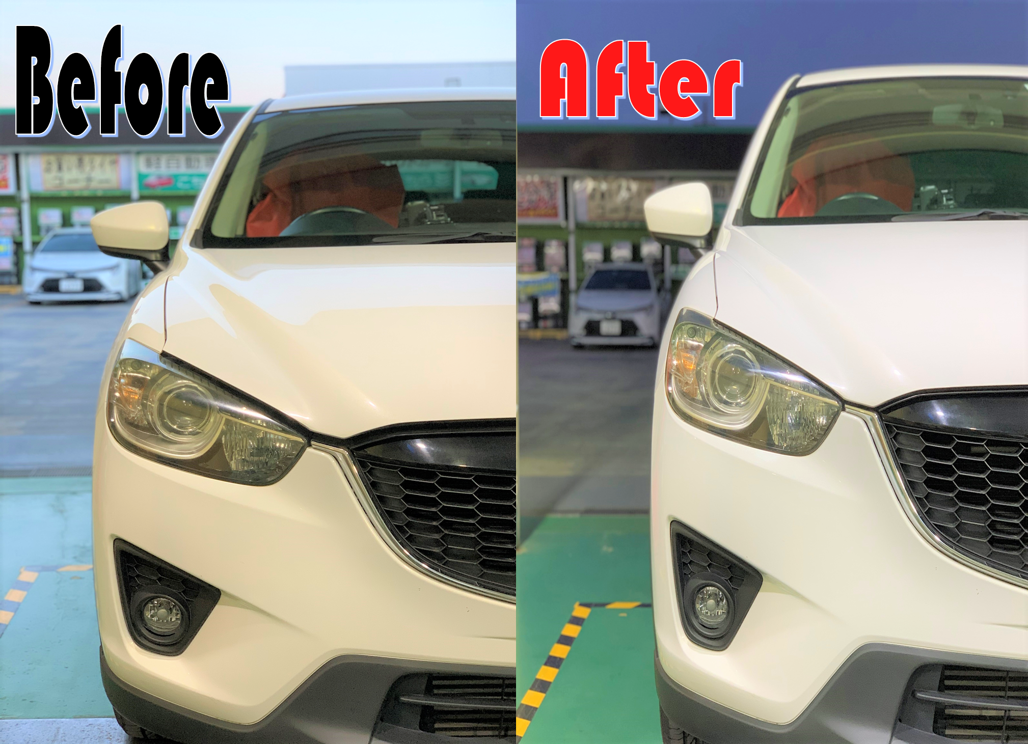その黄ばみや曇りを綺麗にしてその状態をキープさせるためにコーティングする作業です!