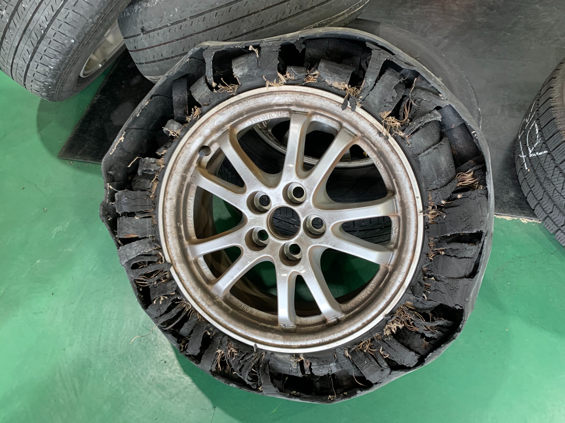 また、こちらのお客様はタイヤのバーストで走行ができなくなり