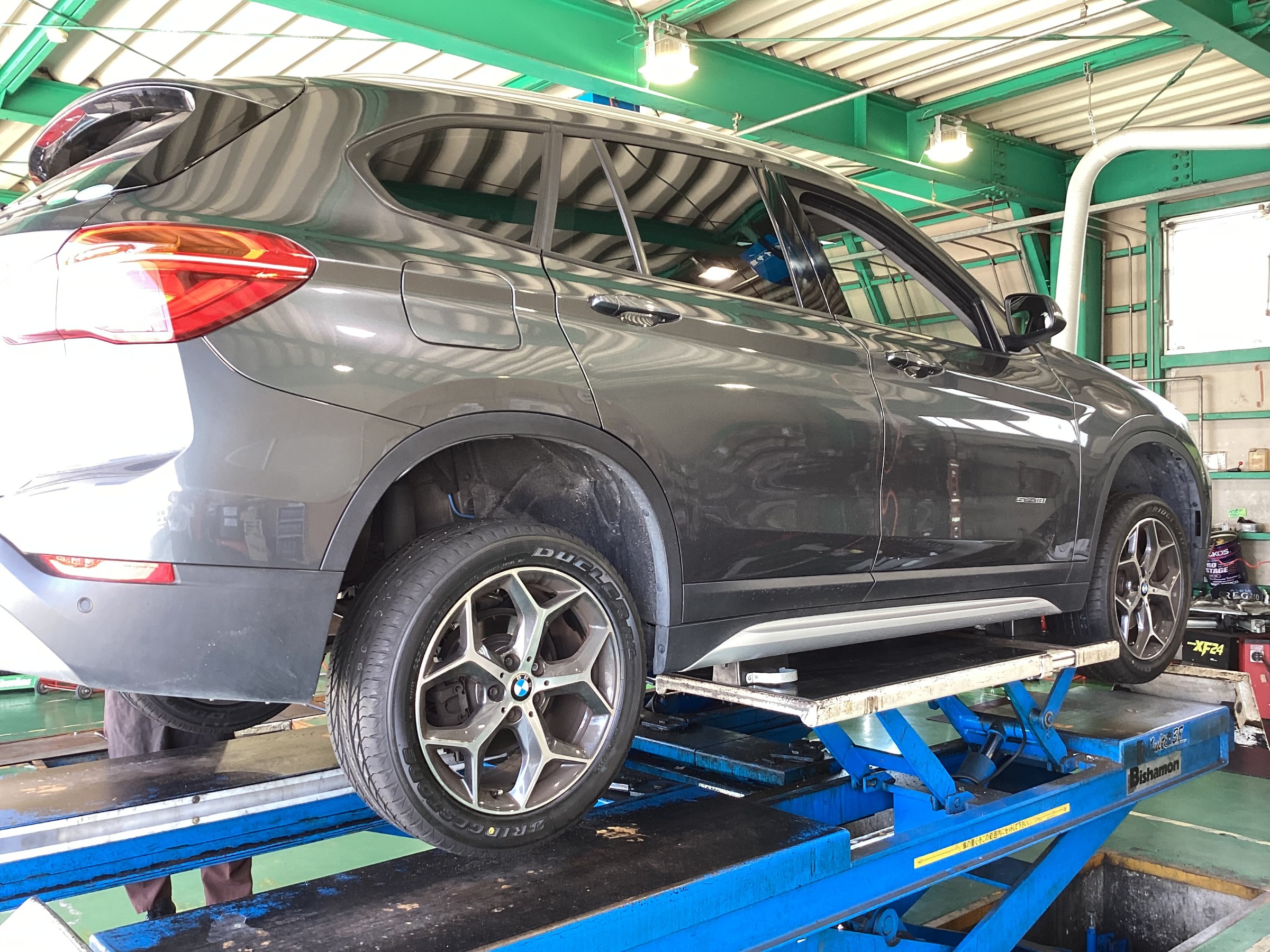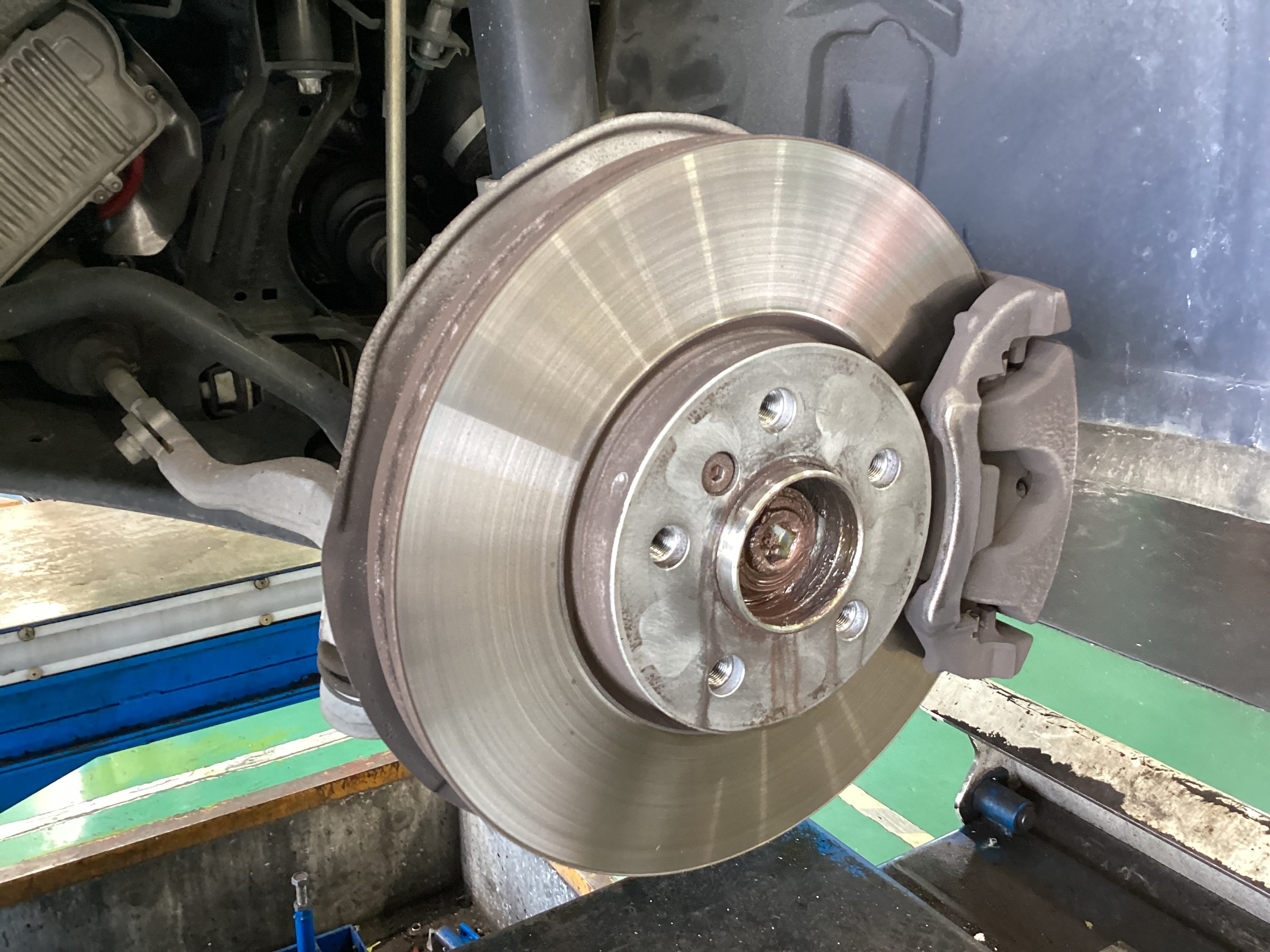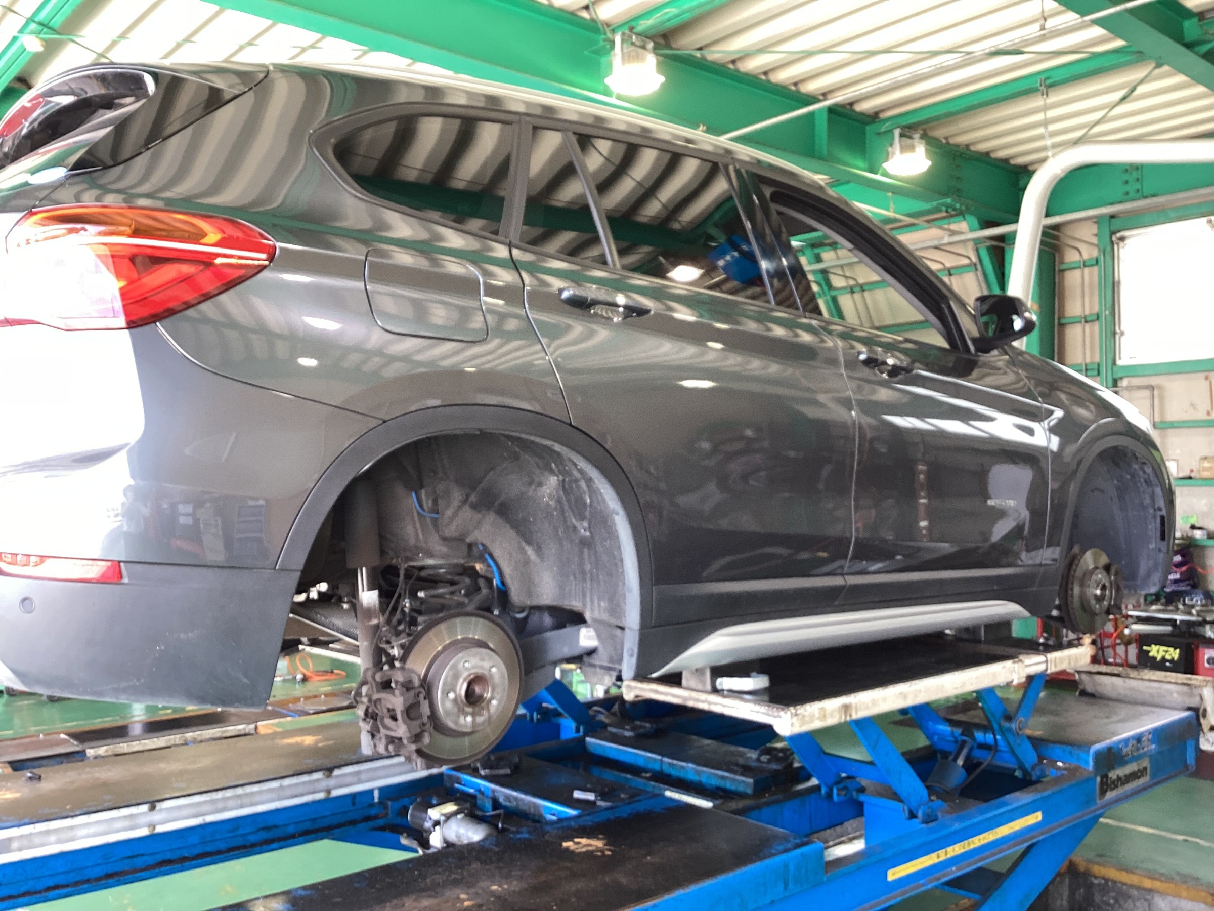 お車をピットに入庫し、タイヤを外して作業スタートです!(^_-)-☆