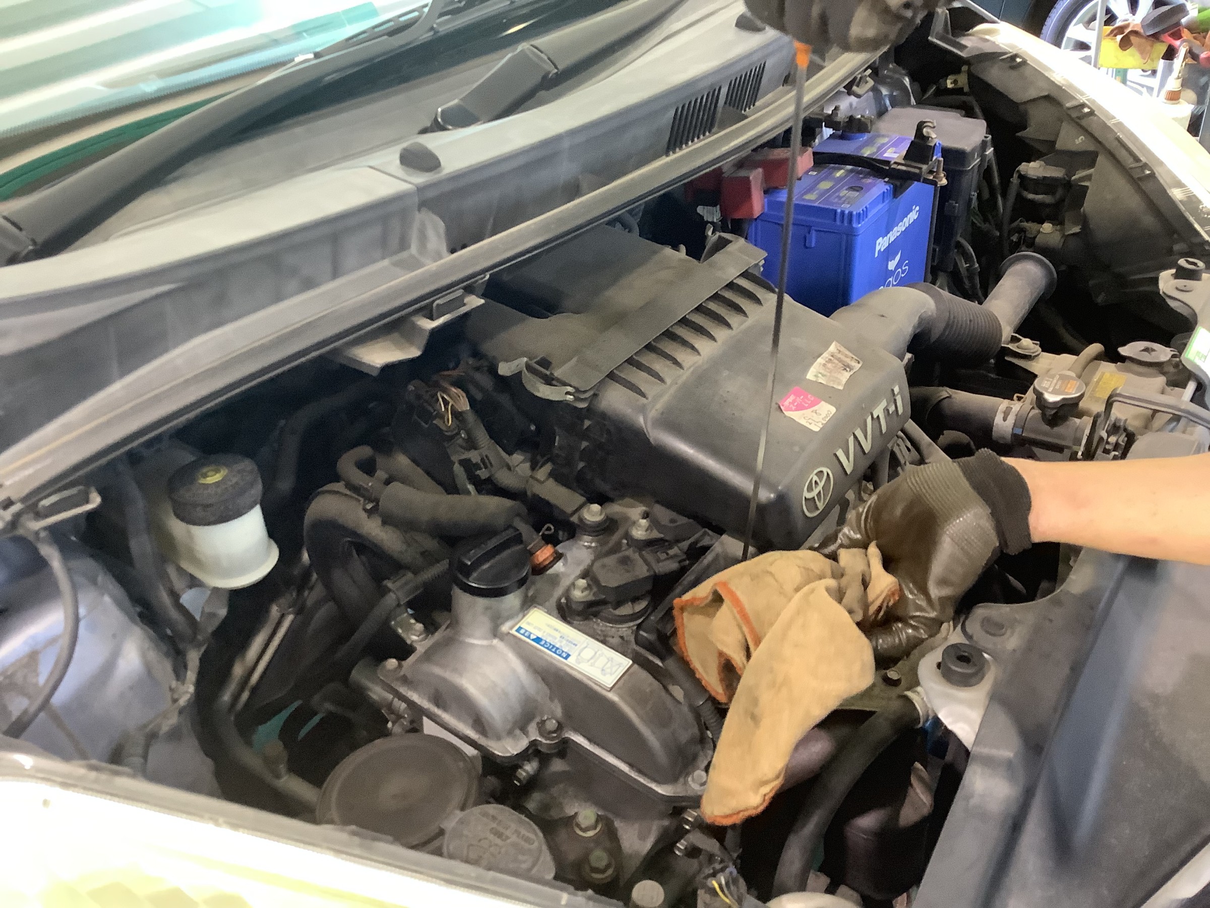 本日は,TOYOTA ラクティスのエンジンオイル交換作業のご紹介です!