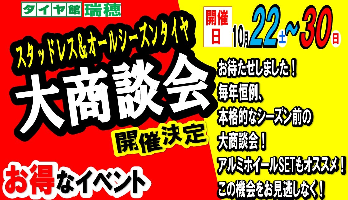 毎年恒例!本格シーズン前の【スタッドレス&オールシーズンタイヤ大商談会】開催いたします。