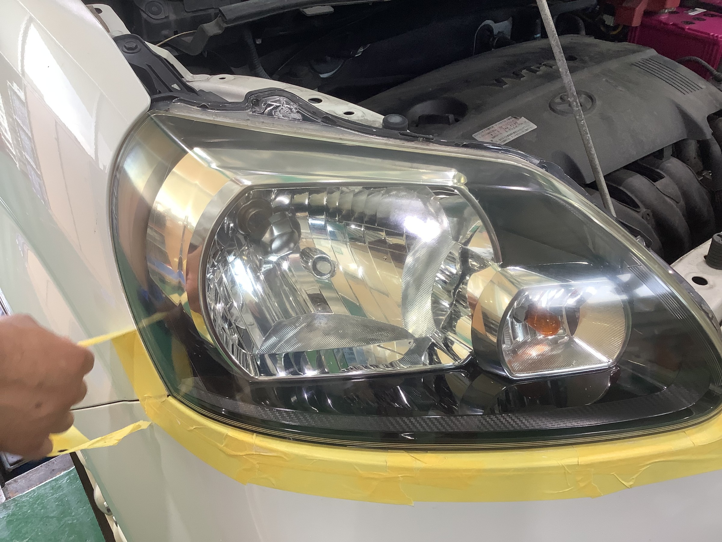 本日の作業紹介はTOYOTA ポルテのヘッドライトコーティング施工です。
