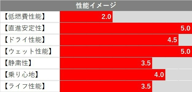 ※性能イメージ図はブリヂストンタイヤのスポーツタイヤカテゴリー内での性能特性のイメージを表したものです。