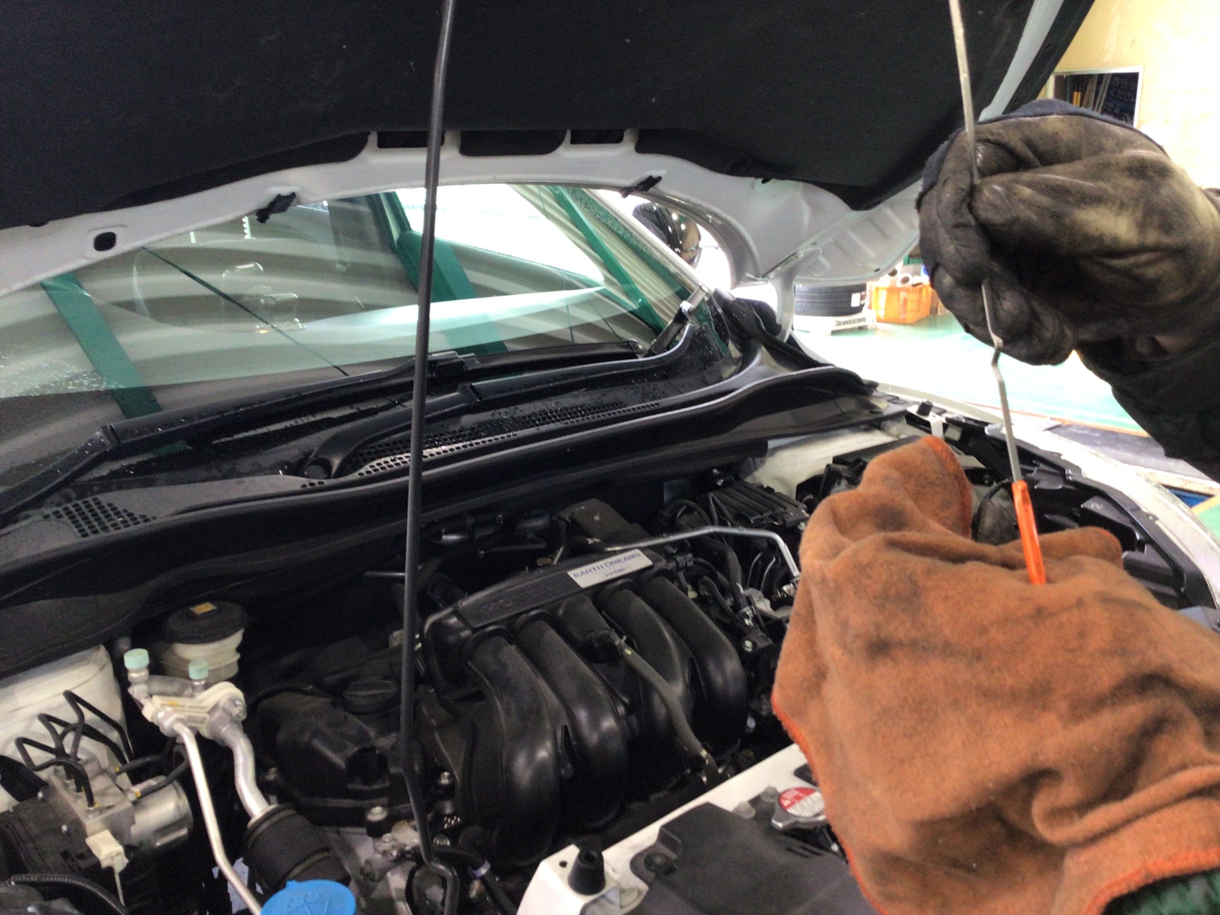 最後にゲージでオイルが規定量入っているかを確認して、、、