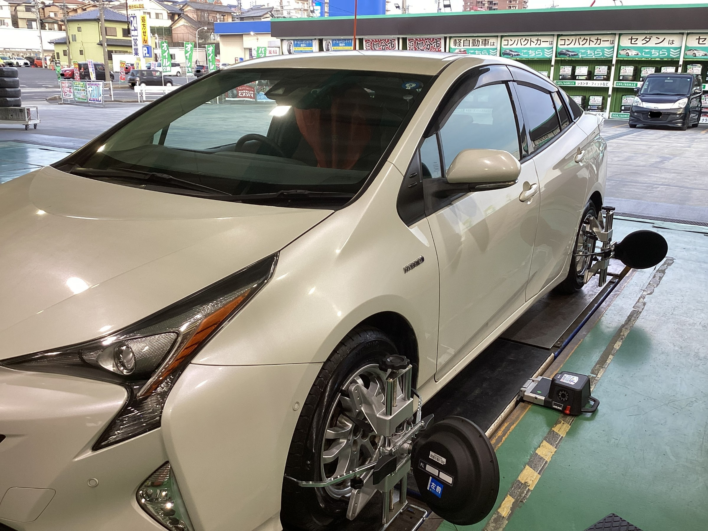 本日は、TOYOTA プリウスのタイヤ取付&アライメント調整作業