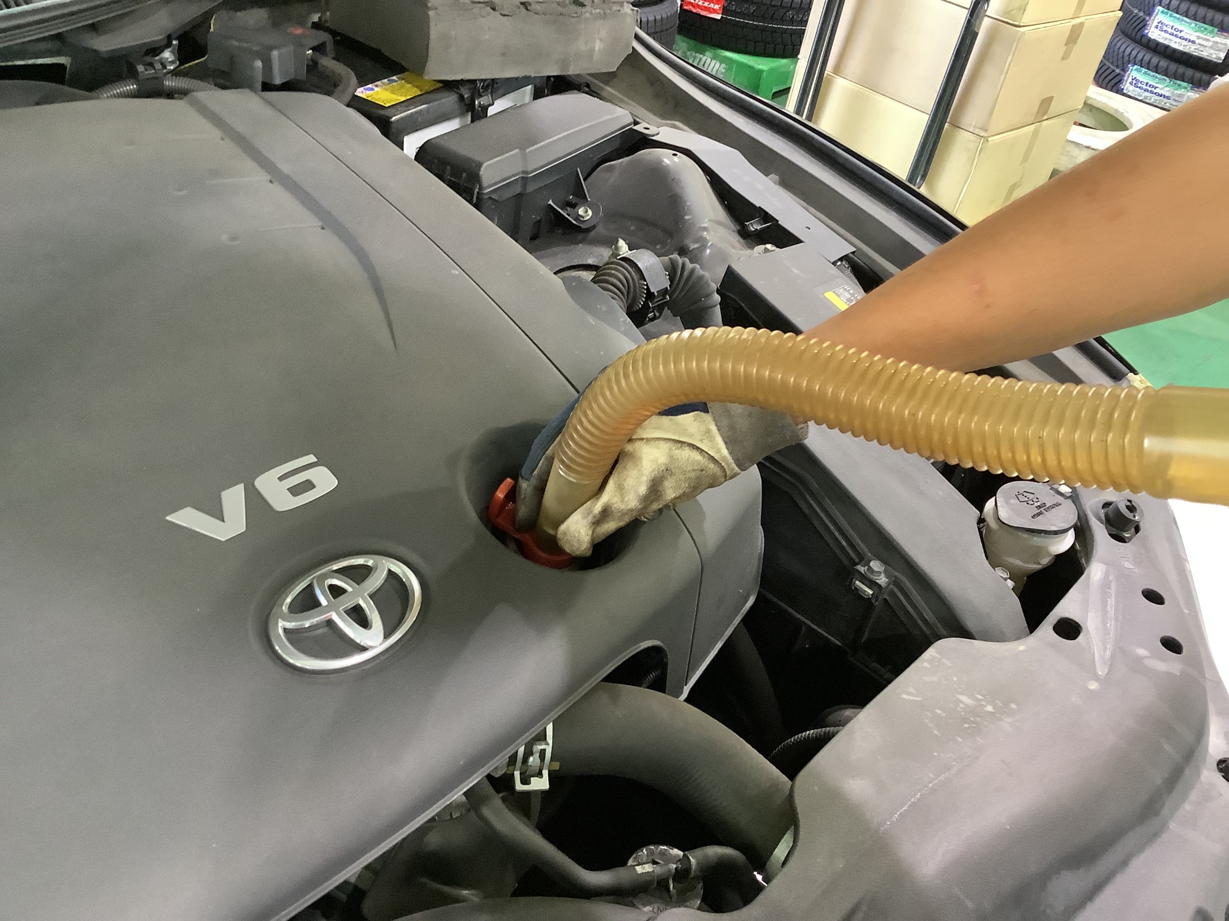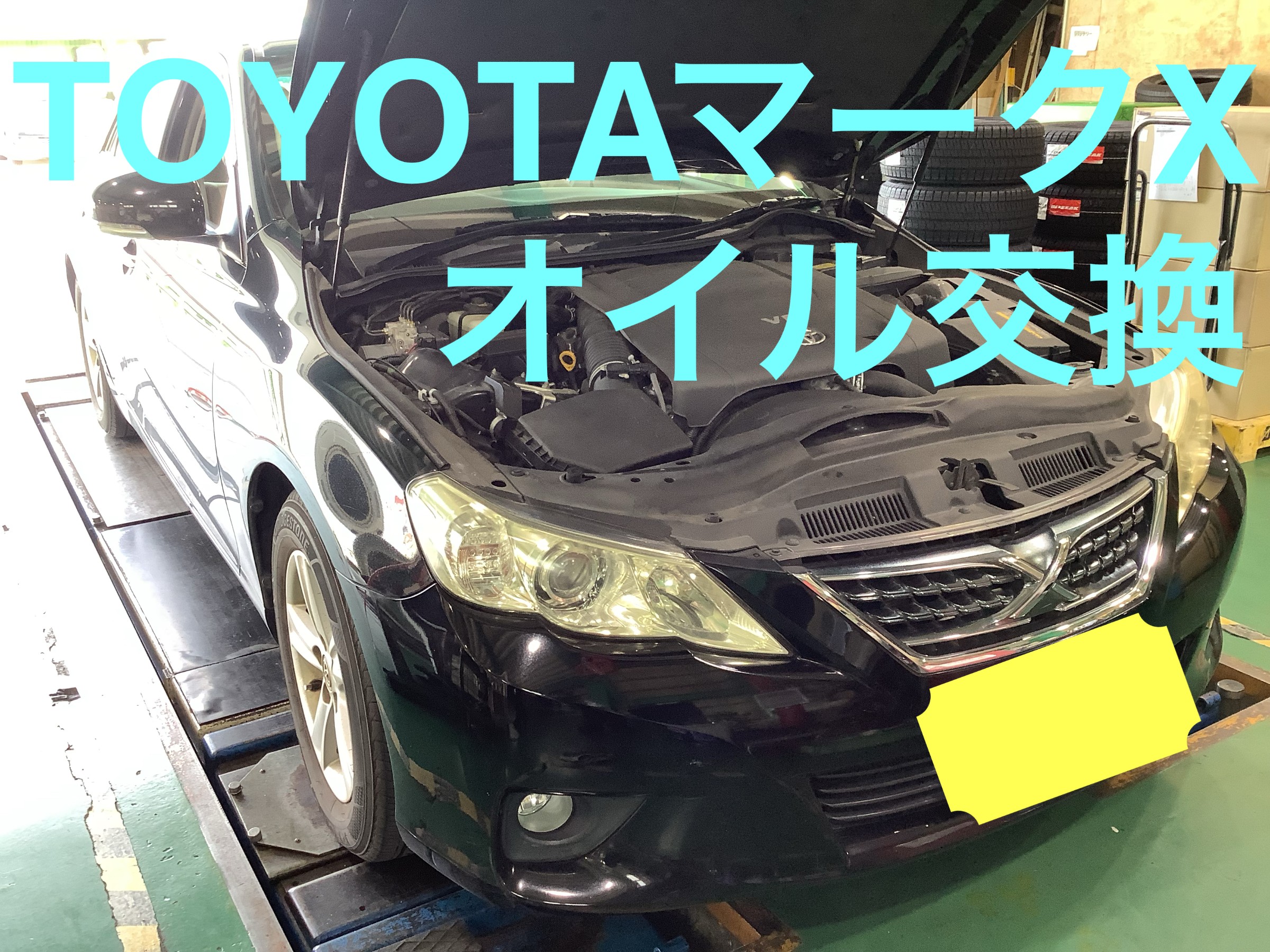 本日は,TOYOTA マークXのエンジンオイル交換作業のご紹介です!