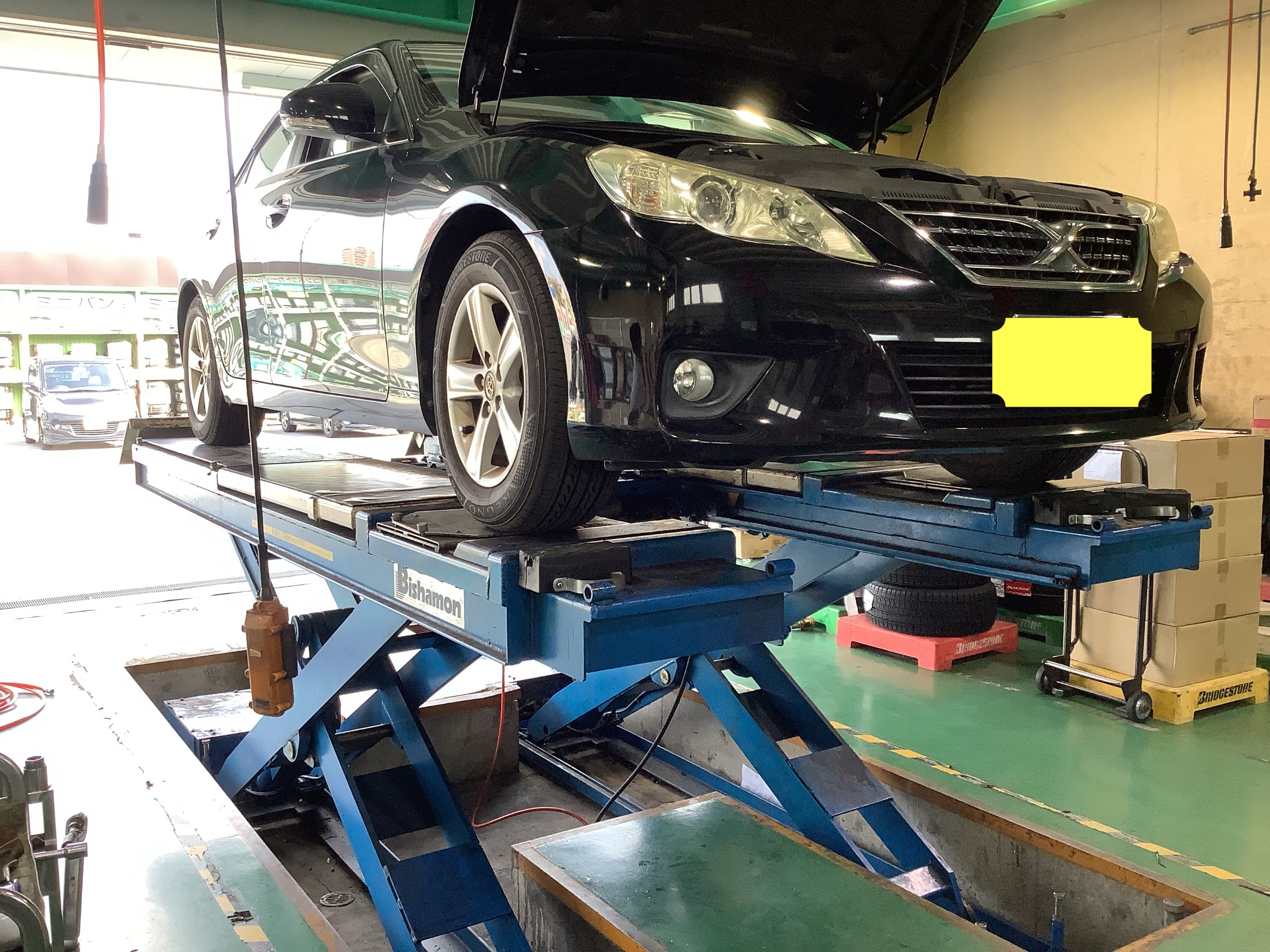 まずは車をピットに入庫し、エンジンオイルの交換作業を始めます(^^)