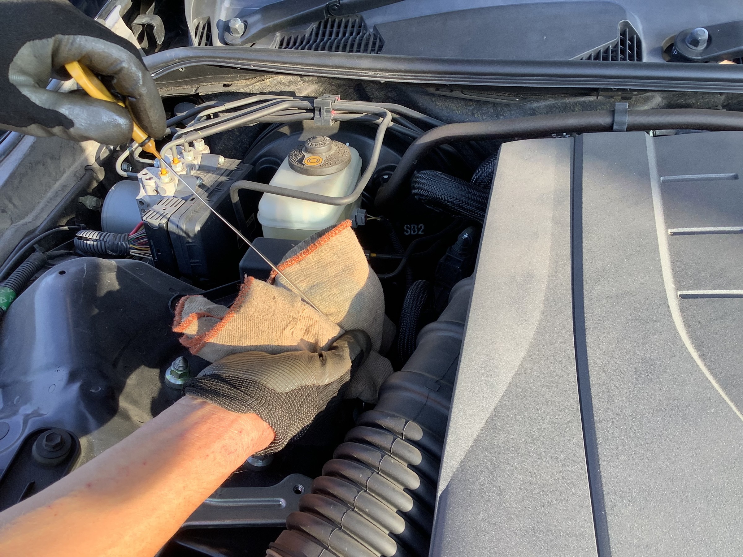 最後にゲージでオイルが規定量入っているかを確認して、、、