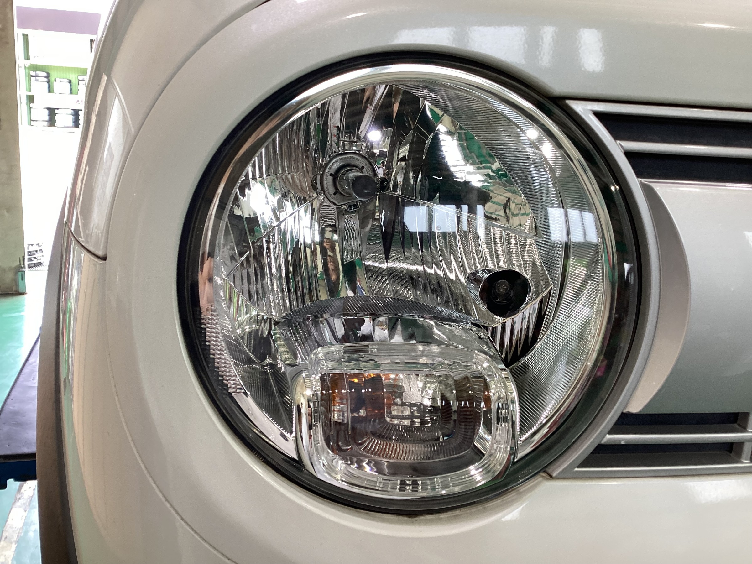 本日の作業紹介はSUZUKI ラパンのヘッドライトコーティング施工です。