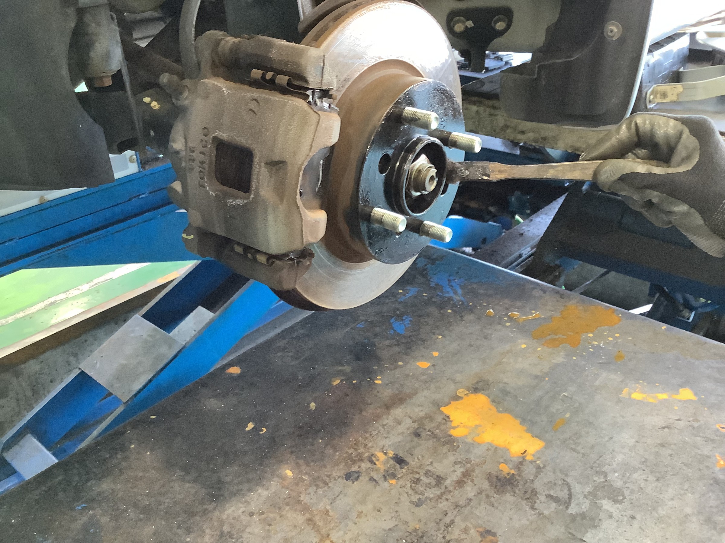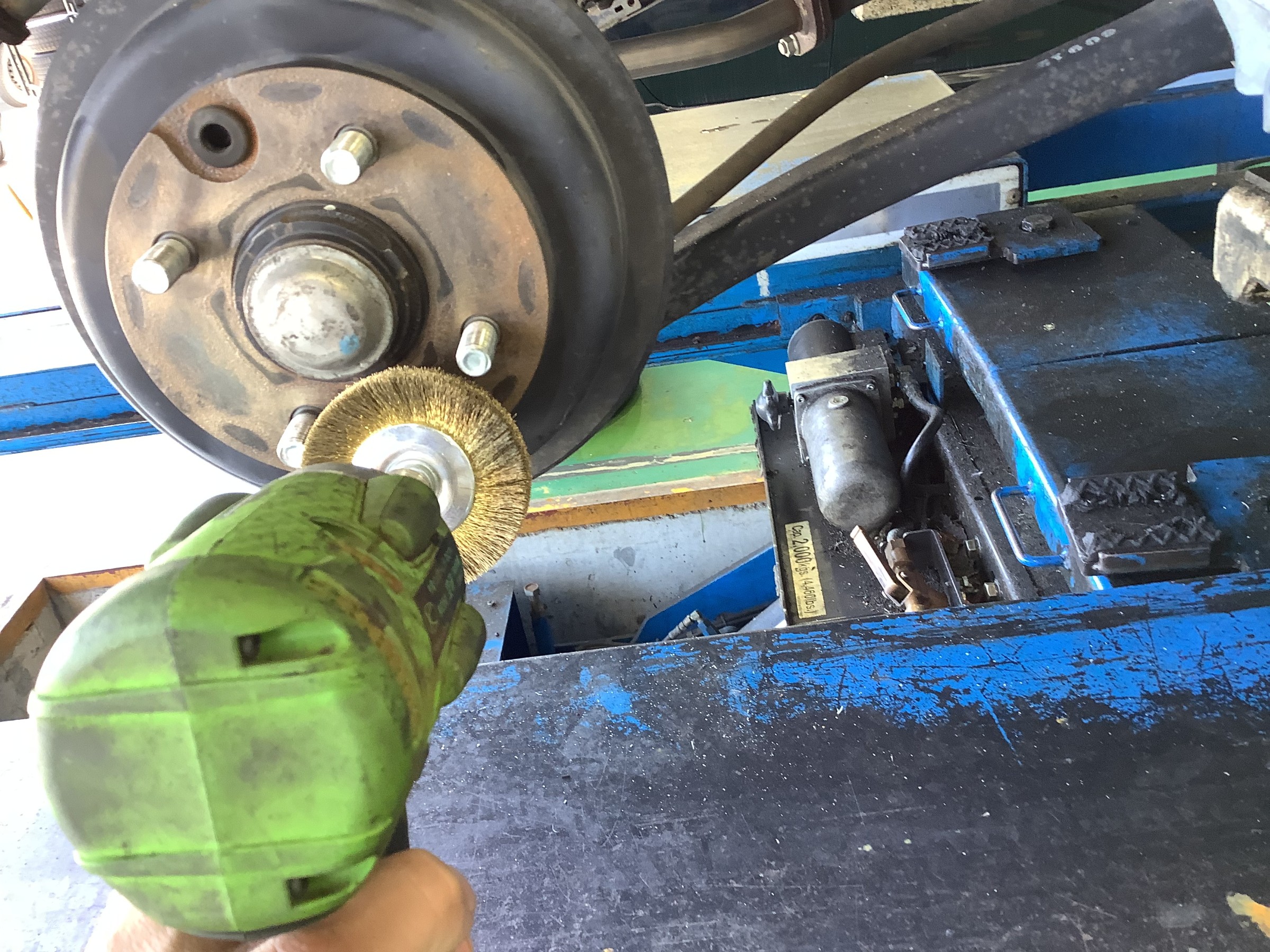 タイヤ取り付け部分(ハブ)の錆を削ります。