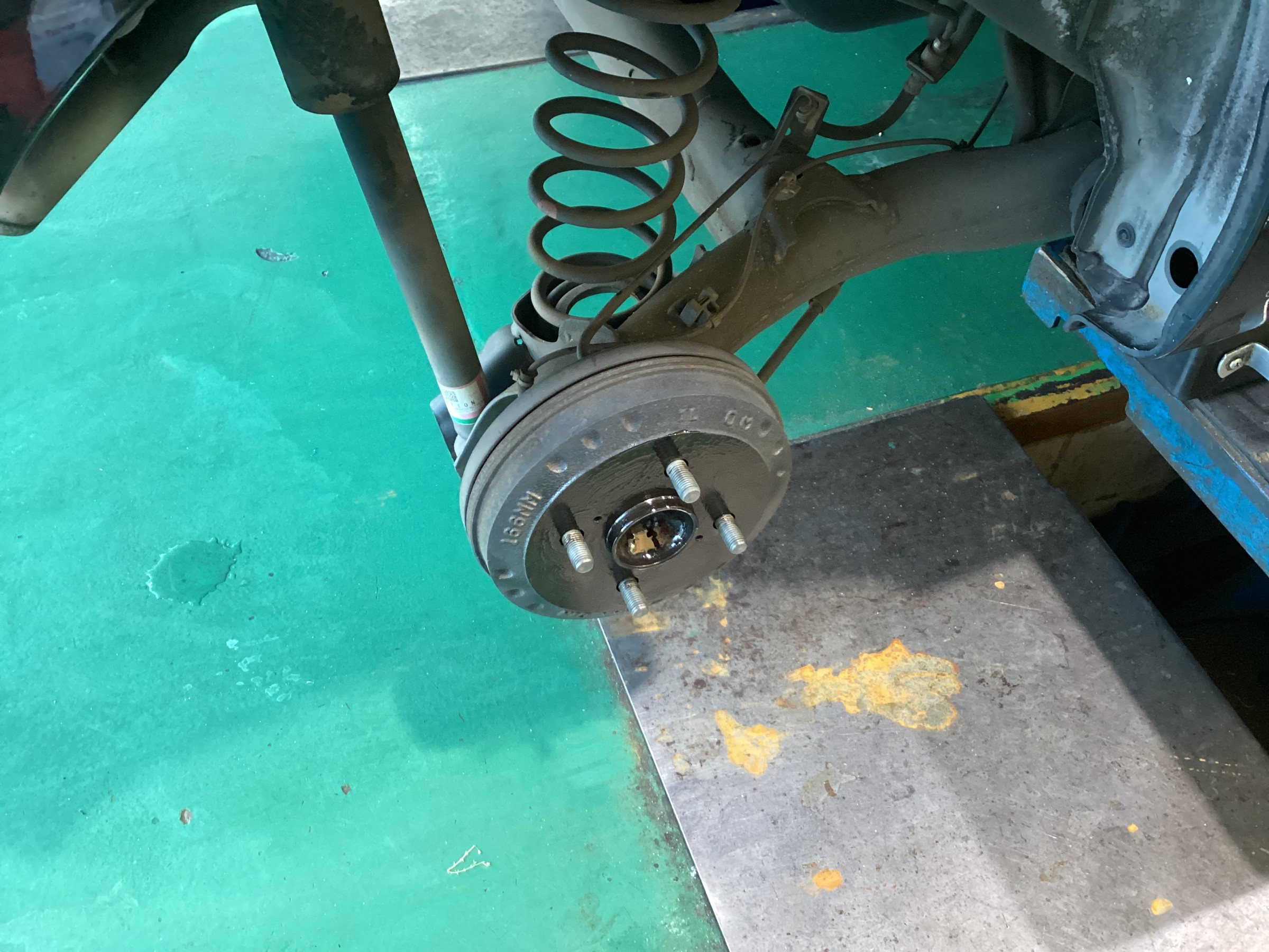 それでは、お車をピットに入庫しタイヤをはずして作業スタートです!