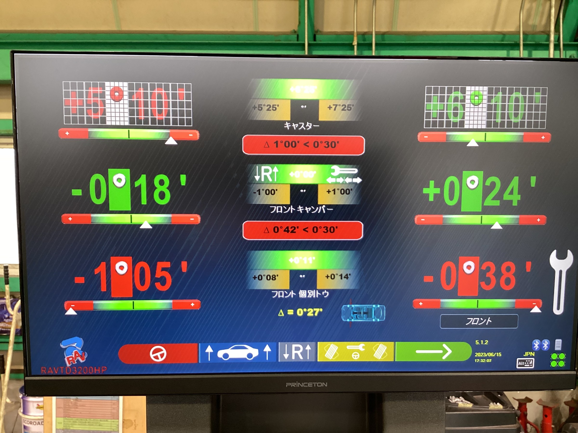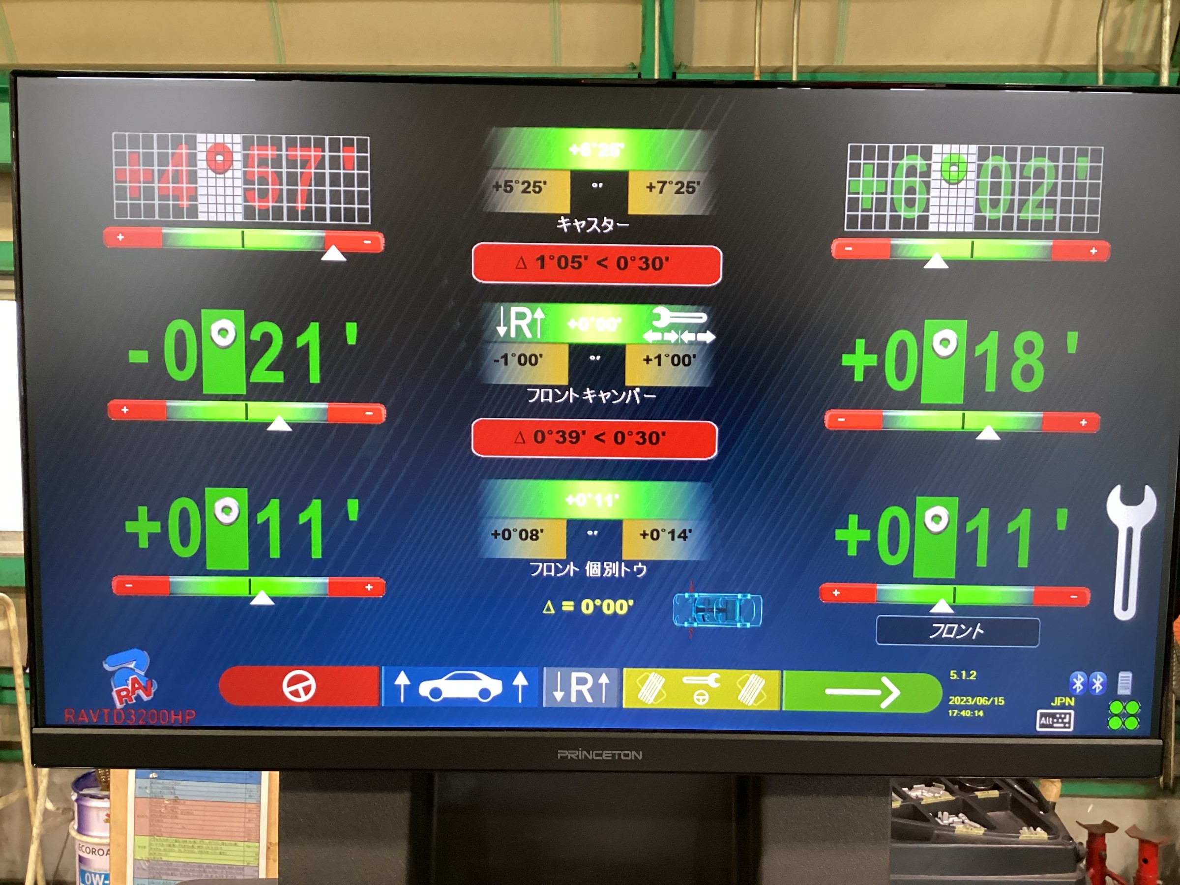 その後、ステアリングを真ん中に固定して測定完了です。