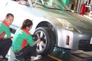 本日Z33のタイヤ交換&アライメント作業が入り、その様子を当ホームページ技術・サービス紹介にUPしようと写真を撮っていると…