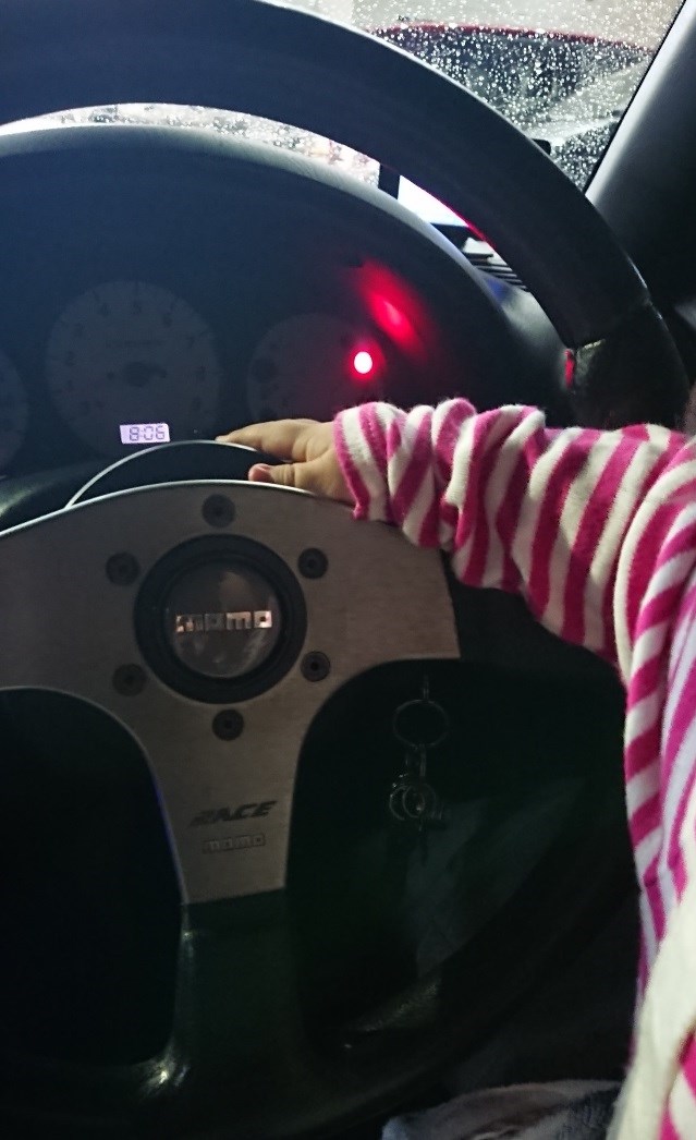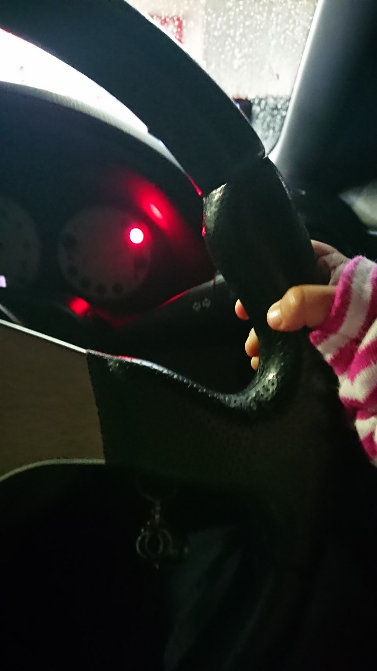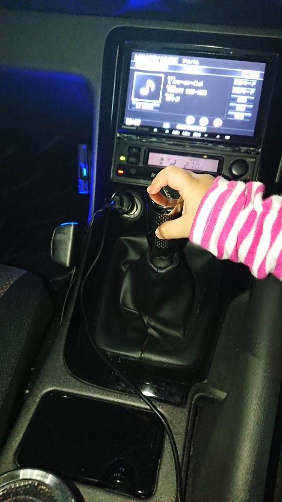 ある日運転席に乗せてみたら、シフトレバーガチャガチャッ