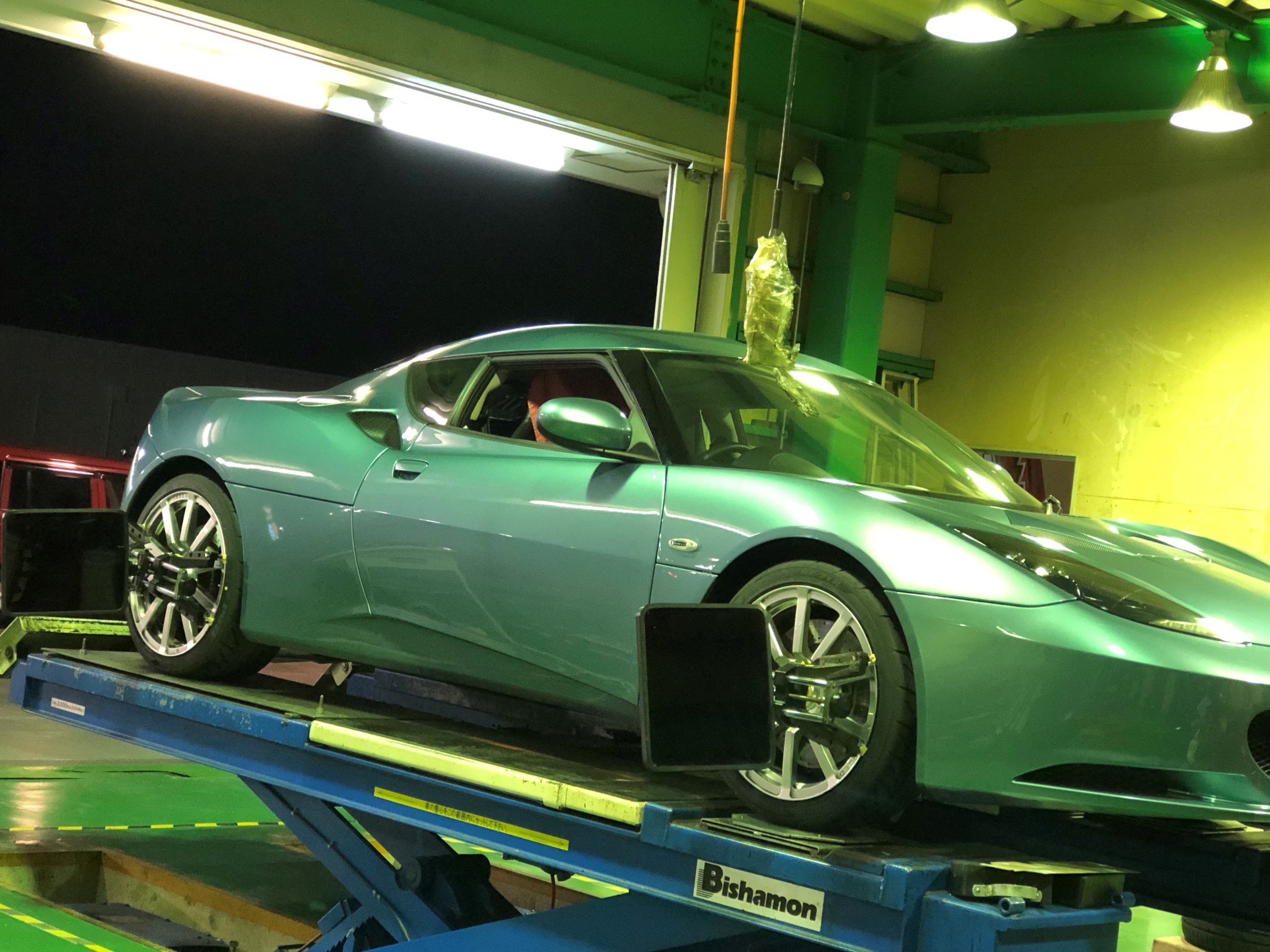 今日の作業はあのロータスのエヴォーラのタイヤ交換とアライメントです!!