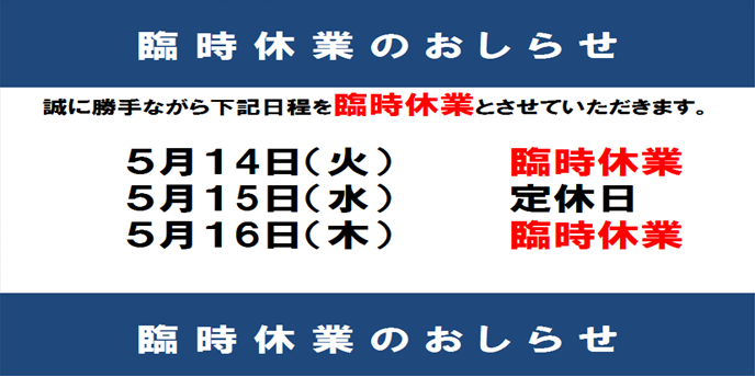 再度臨時休業のご報告