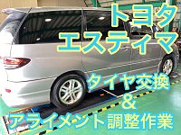 トヨタ エスティマ タイヤ交換&アライメント調整作業